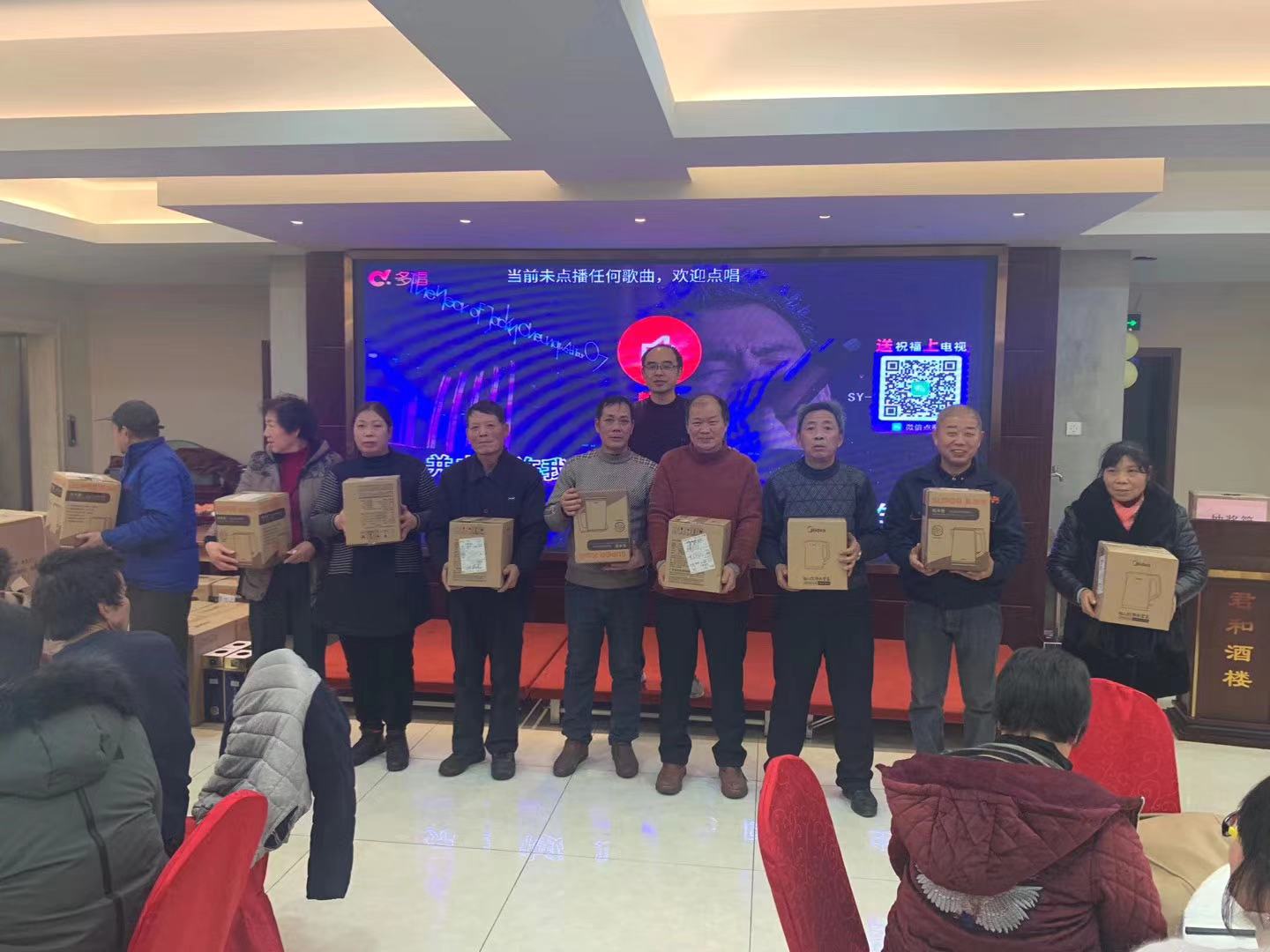 晚上全體員工聚集在君和酒店吃年夜飯,為活躍氣氛,年會(huì )上好多員工都一展歌喉,表演了才藝。公司為感謝全體員工的努力,年夜飯期間并進(jìn)行了抽獎,此次抽獎共分特等獎、一等獎、二等獎、三等獎、鼓勵獎和幸運獎,基本上每位員工都能中獎。
