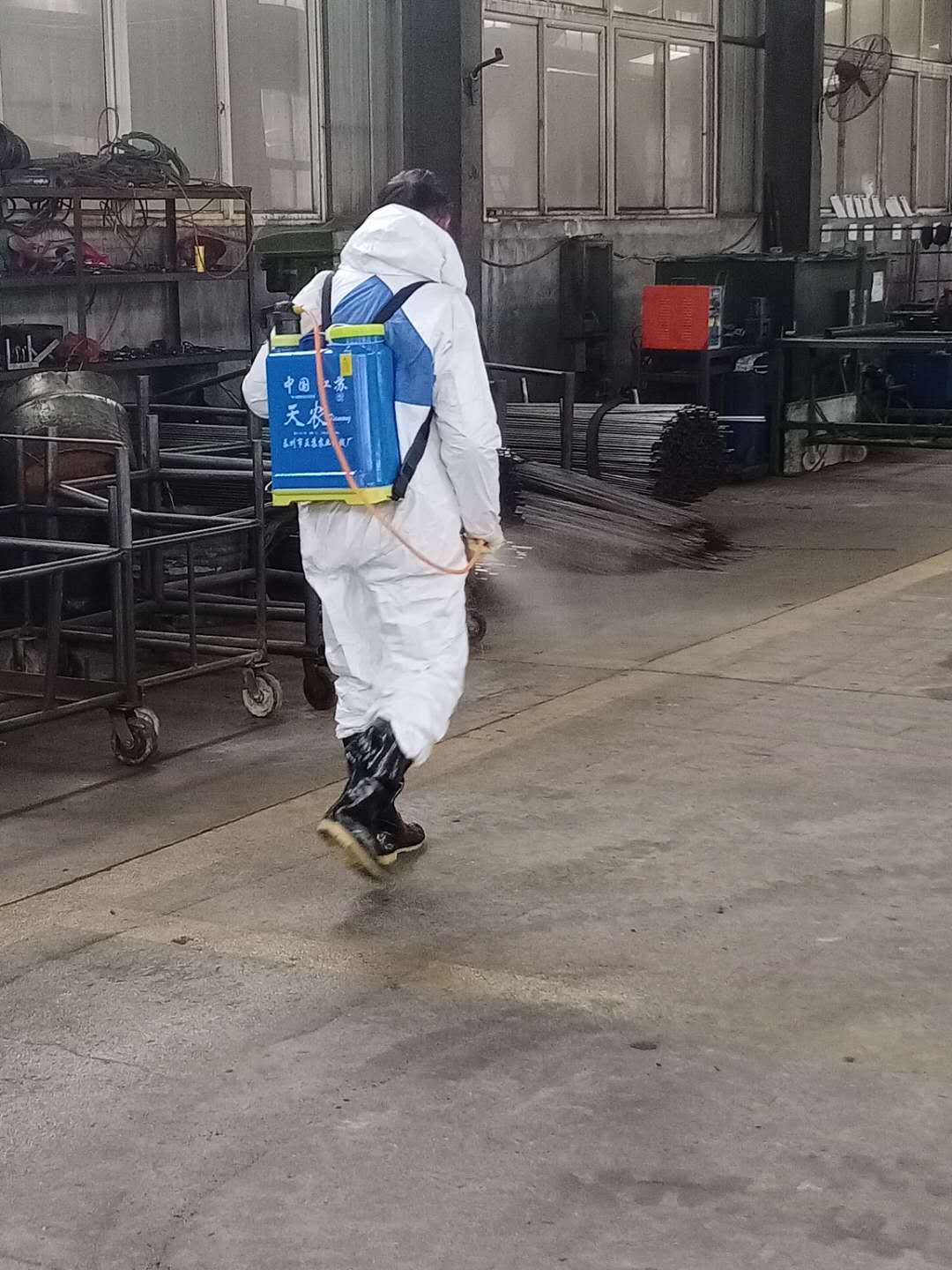 廠(chǎng)區消毒由專(zhuān)人負責,消毒人員配備專(zhuān)業(yè)防護設備,對廠(chǎng)區進(jìn)行全方位每日2次的消毒,創(chuàng )造放心環(huán)境,讓星瑞人安心生產(chǎn)。